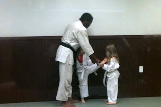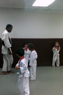 As it turns out, we should have been considerably less concerned. Hallie had a marvelous time. Maybe it was the series of lengthy conversations about this that Sharon had with Hallie. Or perhaps Hallie was feeling better. Or maybe it was the fact that everyone was wearing a gi. Whatever it was, we are grateful and quite impressed by Hallie's willingness to try new things and do so gracefully.